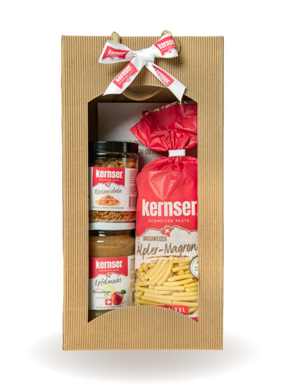 Älpler-Magronä Täschä Einfach immer ein super Geschenk aus dem Herzen der Zentralschweiz. Die Tasche beinhaltet:- Original Älpler-Magronen 3Ei 500g- Epfelmuäs aus Schweizer Äpfel 360g- Röstzwiebeln 100g- Original Älpler-Magronen-Rezept Menge - + Ihr Preis CHF 23.90 inkl. MWST zzgl. Versandkosten Zur Merkliste hinzufügen In den Warenkorb Nährwertangaben Das könnte Ihnen auch gefallen Urchigs Älpler Zmittag CHF 42.90 Älpler-Magronä HIT CHF 33.90