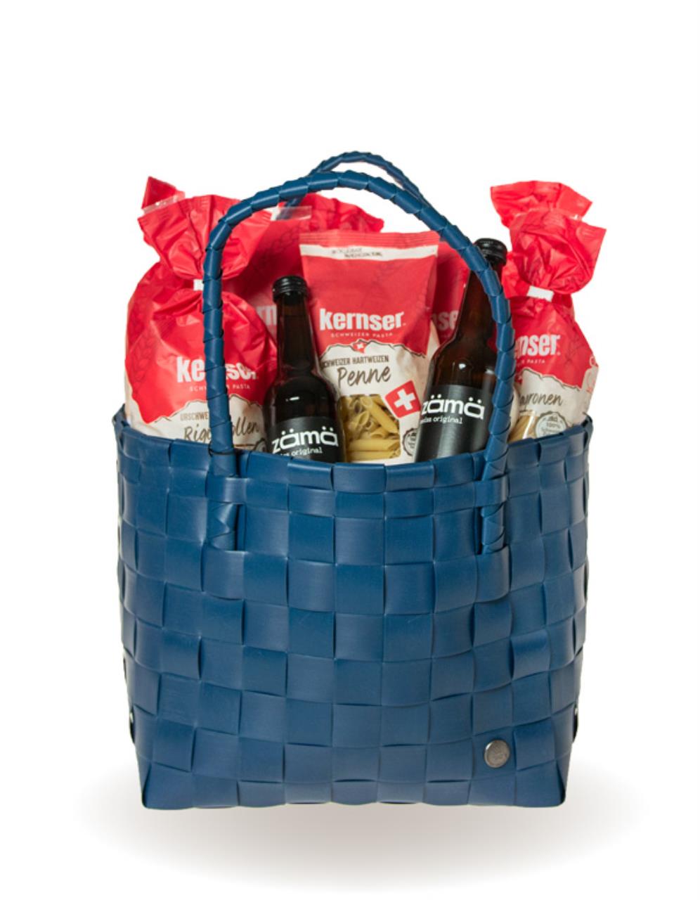 Die Shopping Tasche mit den besten Pasta-Spezialitäten gefüllt. (Die Farbe der Tasche kann variieren)