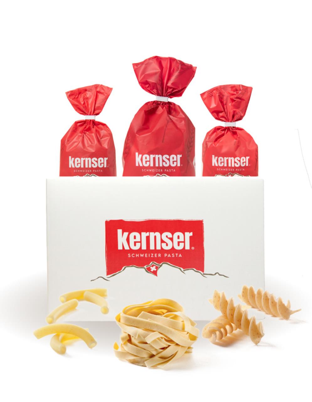 Kennen Sie unsere Pasta noch nicht? Das Kernser Probier-Set enthält von Allem etwas: eine UrSchweizer, UrDinkel- und Walz-Spezialität, das Trio eignet sich bestens zum Kennenlernen oder Weiterverschenken.